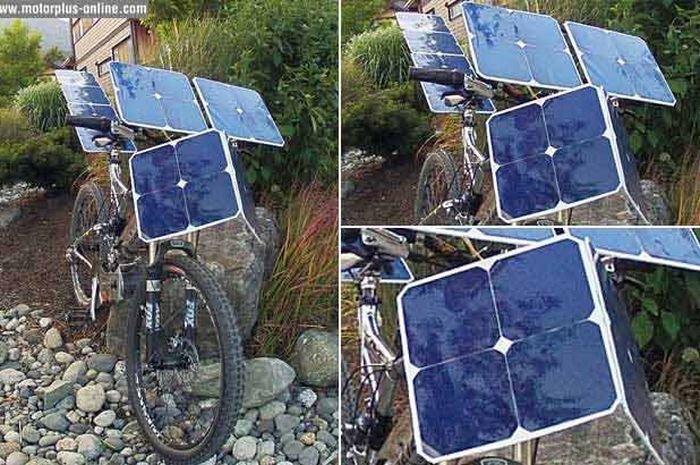 Dengan tenaga solar atau matahari yang dihasilkan, E-Bike atau sepeda elektrik ini mampu beroperasi tanpa baterai atau pedal dengan kecepatan 7 km/jam. Jadi, lebih efisien dong. (www.motorplus-online.com)