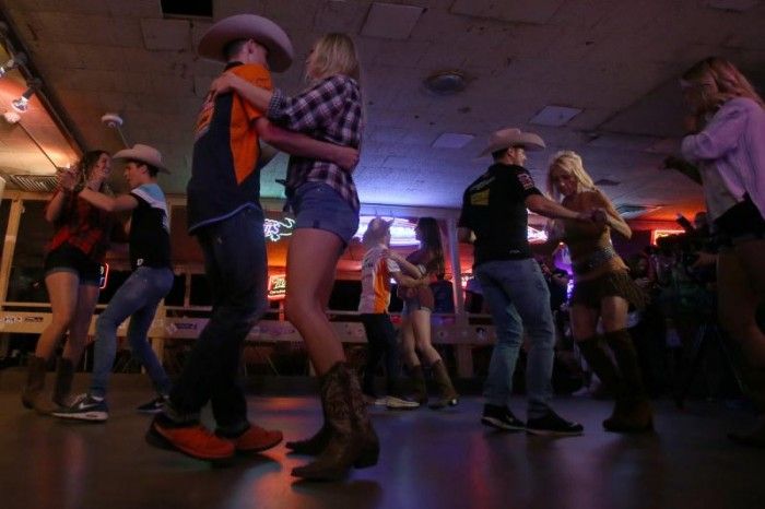 Instruktur Broken Spoke Swing Dance Terri dibikin di Broke Spoke, Texas.