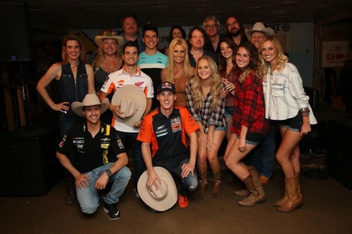 Dua pembalap MotoGP yang turun di sirkuit Austin, Amerika, Dani Pedrosa dan Pol Espargaro, rider Moto2, Tomas Luthi dan Joan Mir, mengikuti kursus singkat Broken Spoke Swing Dance.