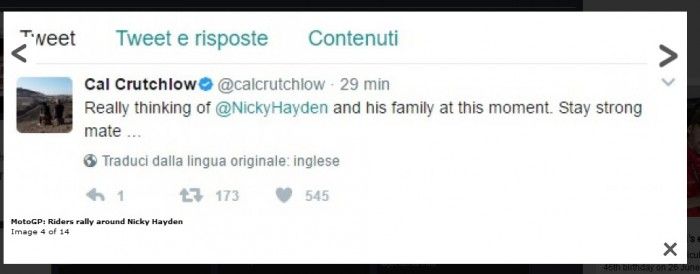 Bahkan setelah mendengar kabar kecelakaan yang menimpa Nicky Hayden, Felippe Massa langsung memposting dukungan kesembuhan untuk Nicky Hayden.