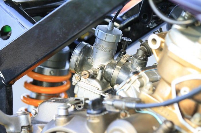 Masih pakai Keihin PWL 28 yang direamer jadi 31 mm, karena sudah paten dalam regulasi adu balap malam kelas standaran.