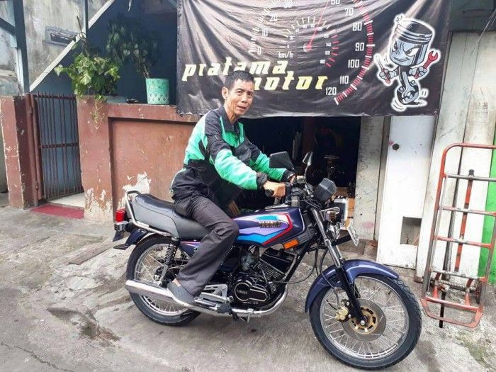 Sosok RX-King milik pak tua rider ojek online bernama Hermanto yang sekarang kondisinya terlihat lebih layak dikendarai ini, diposting oleh akun facebook Firman Fadillah pada Sabtu (3/6) ini.