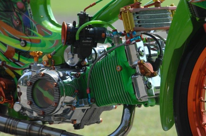 Ubahan langsung di fokuskan pada bagian mesin, tengok saja mulai dari mesin set (mesin tengah, silinder head dan blok) comot milik Honda Kirana, Suzuki FU dan Honda CBR 150R dipasang untuk mengejar kapasitas mesin bengkak.