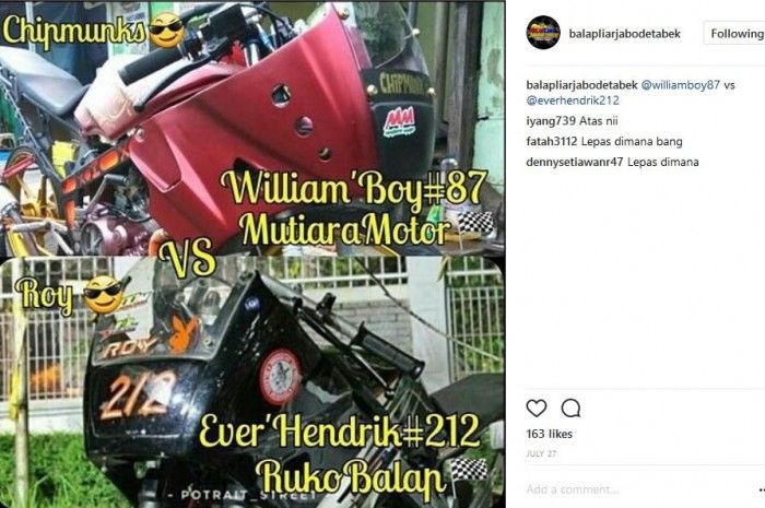 Seperti yang ada di Instagram, diawali dengan admin memajang dua motor yang disatukan jadi postingan.