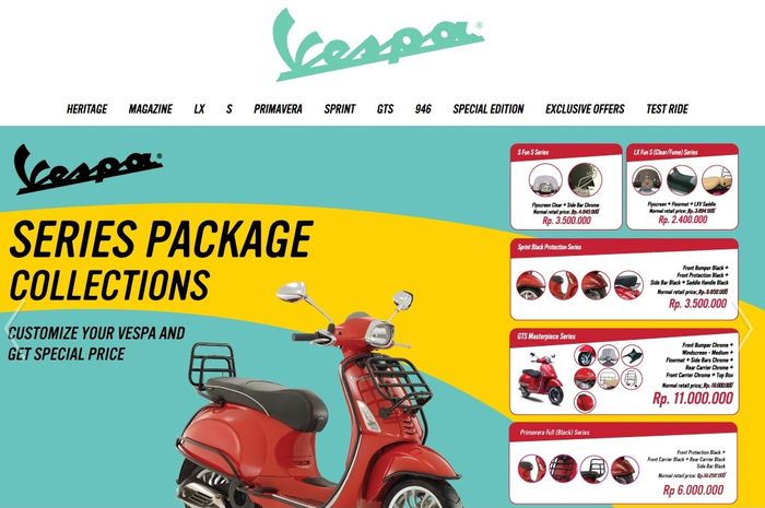 MOTOR Plus - Wow! Vespa Indonesia di laman situsnya http://www.id.vespa.com/ memberi tawaran menarik.