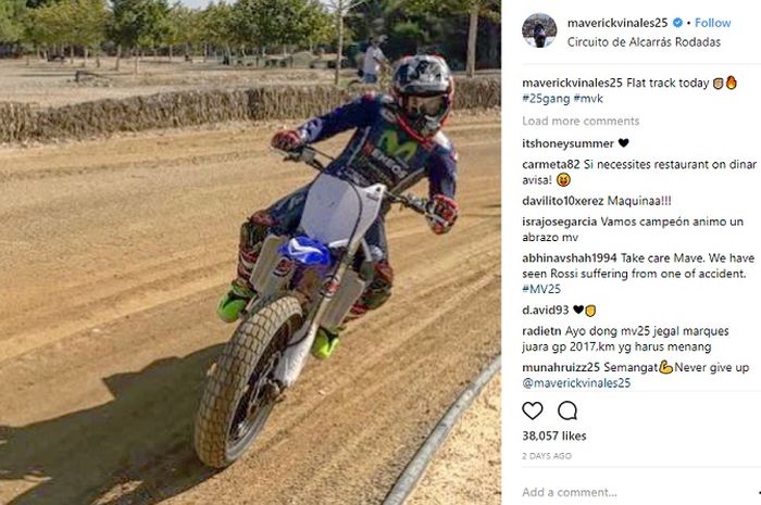 Pada foto yang diunggahnya di akun Instagram @maverickvinales25, Vinales nampak berlatih motocross. Latihan tersebut di Sirkuit Alcarras, Spanyol.