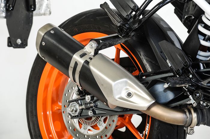 Cuma sayangnya sama seperti Duke 250, silencer-nya kurang rapi terutama finishing di pegangan dan ujungnya.