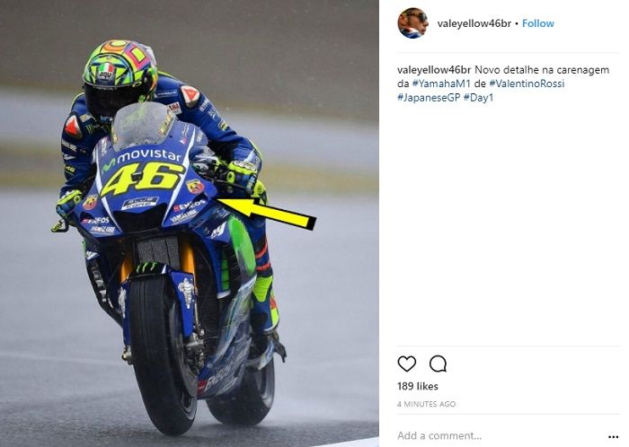 Foto Rossi menggunakan motor dengan tambahan lubang di sisi kanan dan kiri fairing di upload pada akun Instagram fanpage (@valeyellow46br).