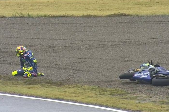 Saat melewati Jorge Lorenzo dan merangsek ke posisi 8, Valentino Rossi malah terjerembab ke sisi sirkuit.