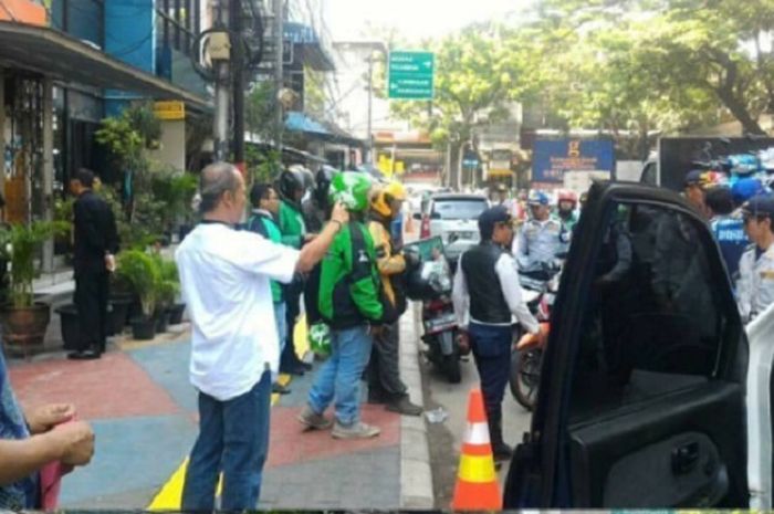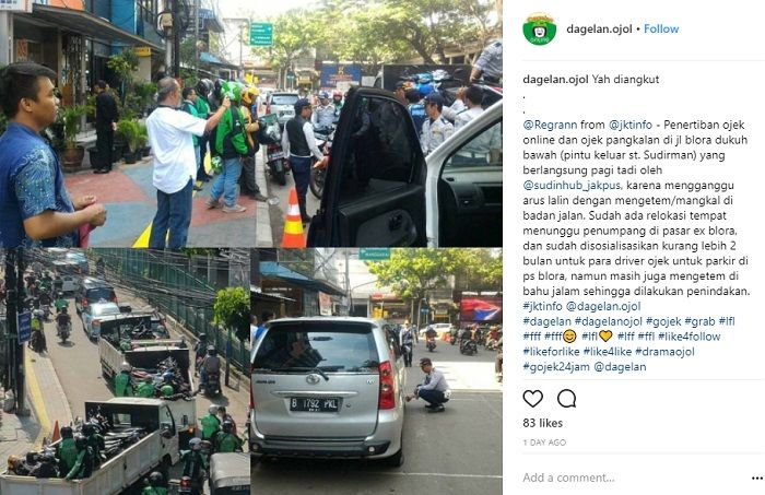 Foto penertiban ojek online dan ojek pangkalan ini diposting di akun Instagram @dagelan.ojol.