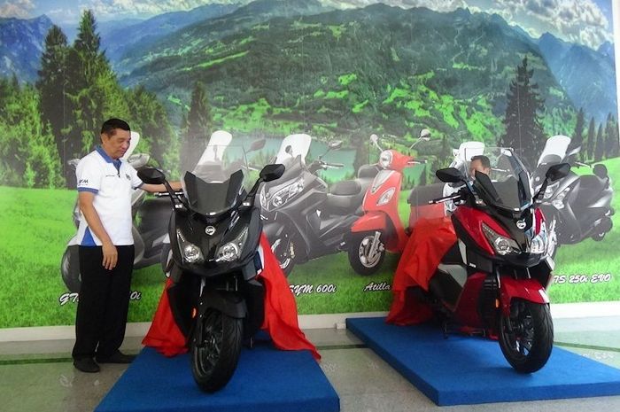 Launching ditandai dengan dibukanya kain penutup yang menutupi Cruisym 300i berwarna merah dan hitam.