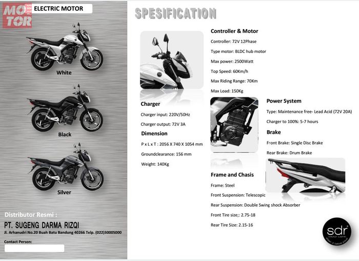 Jarak tempuh : 70 km (baterai dalam keadaan penuh)
