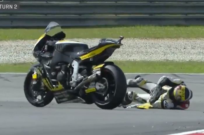 Luthi mengalami highside keras di tikungan ke-2 sirkuit Sepang.