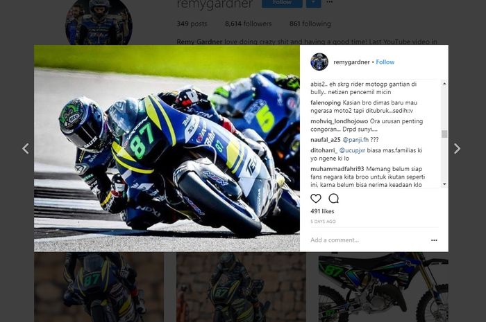 Ragam komentar netizen asal Indonesia mewarnai postingan terakhir Remy Gardner.
