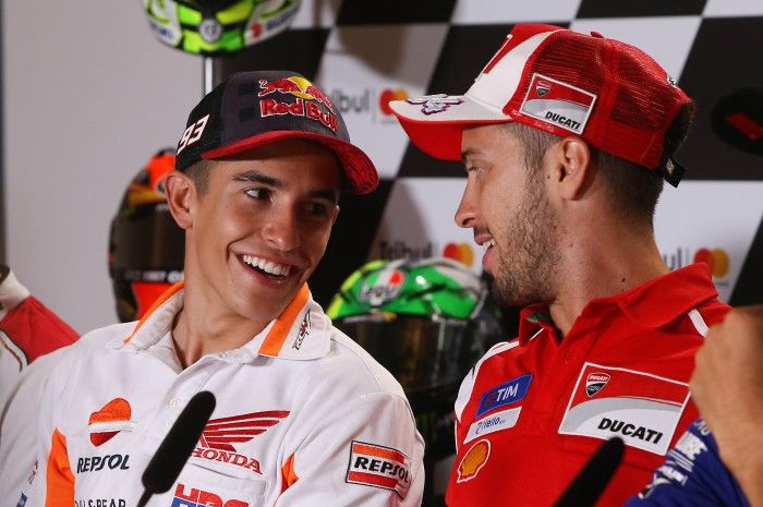 Yaitu pembalap tim Ducati Andrea Dovizioso dan Marc Marquez dari Repsol Honda.