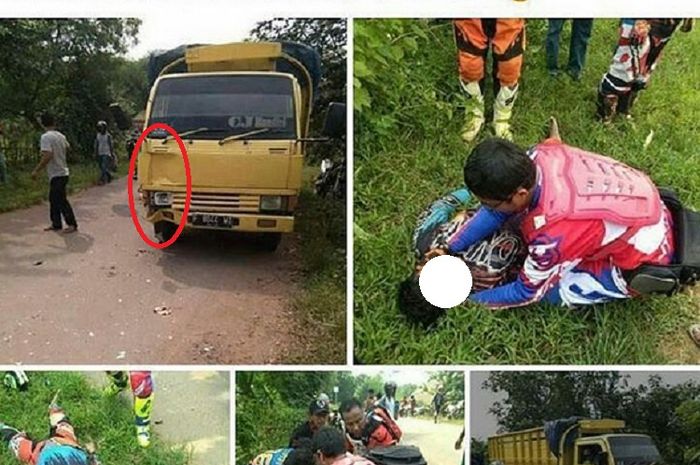 Belum ada info resmi bagaimana kronologi tabrakan antara bikers dari komunitas trail ini meninggal ditempat setelah menabrak bagian kanan depan truk.