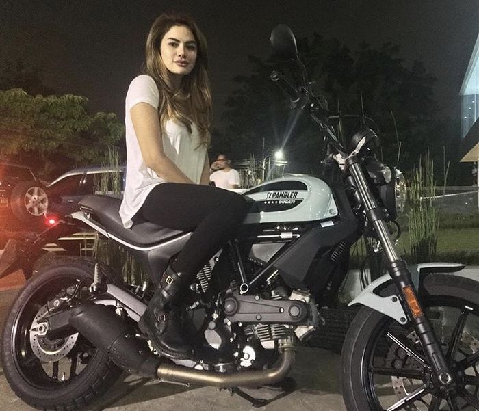 Meski tampil tertutup, Nikita tampak begitu seksi berpose di sebelah motor eksotik asal Italia.
