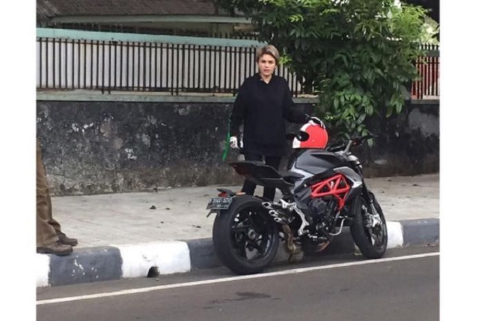 Terbaru yang bikin heboh foto yang diunggah Nikita Mirzani yang tampil kece di sebelah MV Agusta Brutalle.