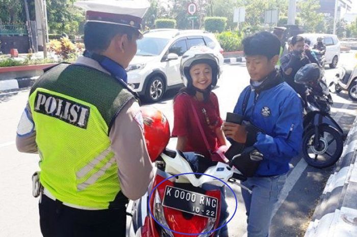 Pastinya Polisi yang bertugas di Operasi Zebra Jl Pandanaran Semarang Senin kaget melihat nomor kendaraan milik Sulton Hendaka (18).