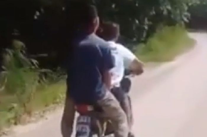 Ironisnya aksi berbahaya itu dilakukan tanpa menggunakan helm atau perlengkapan safety riding.