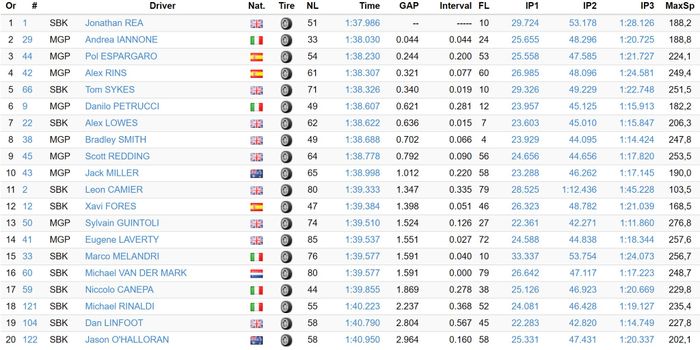 Tipis di belakangnya ada pembalap Suzuki, Andrea Iannone dengan waktu 0,044 detik lebih lambat.