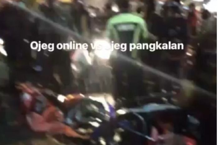 Kejadian saat tempat tongkrongan ojek pangkalan diserbu ojeker ojek online direkam video.