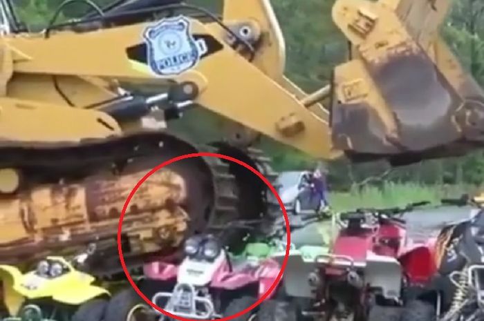 MOTOR Plus-online.com - Ada sebuah video yang menunjukkan pemusnahan massal motor bertipe ATV buldozer.