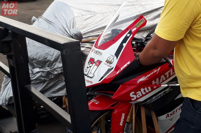 "Iya mas ini motor cadangannya Gerry Salim, buat selebrasi pas Gerry Salim juara (AP250)," ujar Agung, penjaga booth stand motor Honda kepada GridOto di Sirkuit Sentul kemarin (2/12/2017)