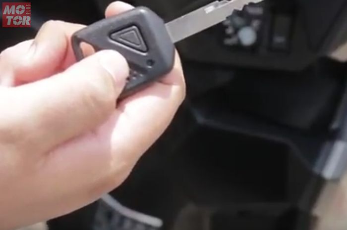 Lalu putar kunci ke posisi on dan tekan tombol di kunci sebanyak 3 kali.