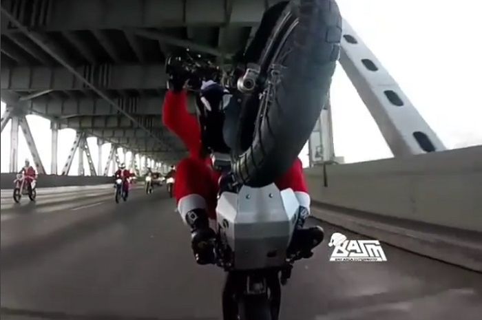 Video sinterklas pamer aksi wheelie ini diunggah akun Instagram @incredible_moto.
