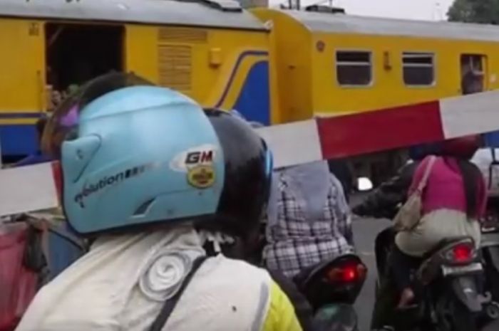 Kemudian ketika mendapati pengendara motor yang hendak menerobos palang pintu yang menutup, korban menghalaunya agar terhindar dari kereta api yang hendak melintas.