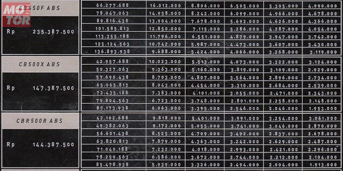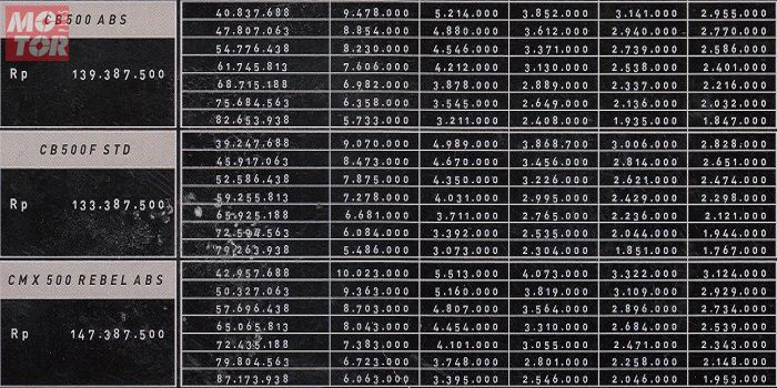 Menariknya, untuk beberapa model yang bermesin 500 cc ada yang cicilannya masih kisaran Rp 1 jutaan.