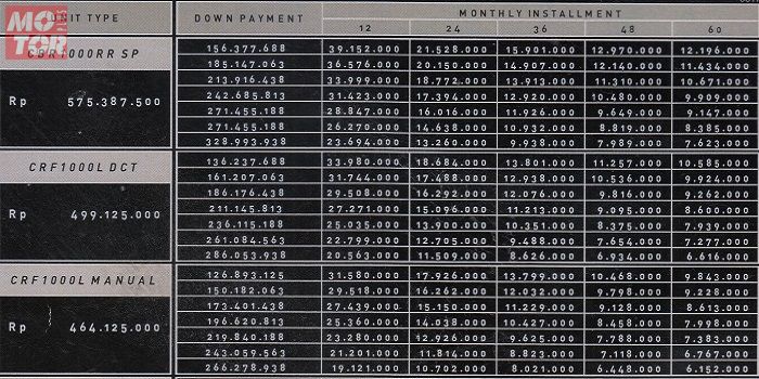 Untuk tenor atau jumlah angsuran, PT AHM menyediakan pilihan dari 12 kali hingga 5 tahun atau 60 kali.