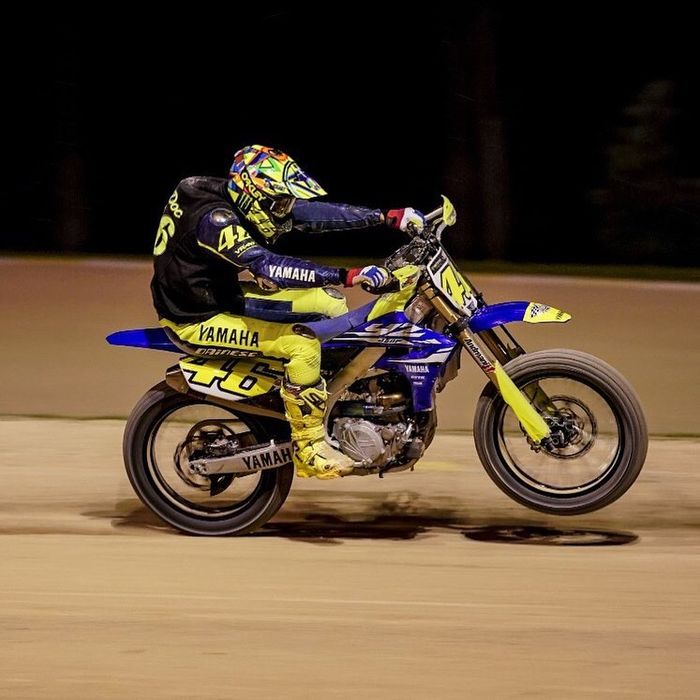 Hal itu seperti diunggah di Instagram @valeyellow46 yang memperlihatkan Valentino Rossi berlatih di atas YZ450F membabat lintasan dirt track.