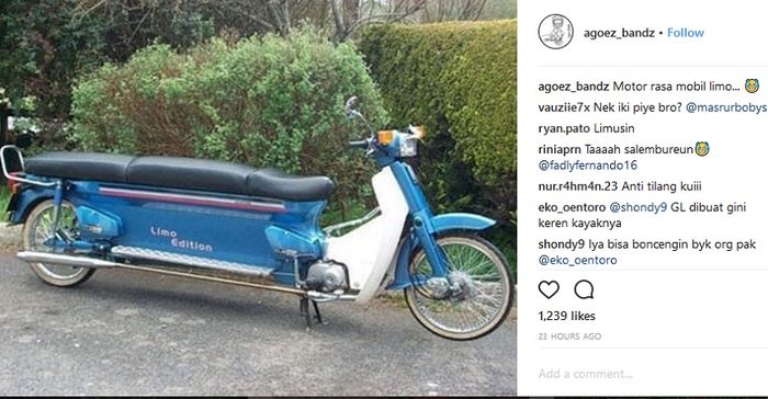 Foto motor Honda Astrea 800 Supercub bergaya limosin ini diunggah akun Instagram @agoez_bandz.