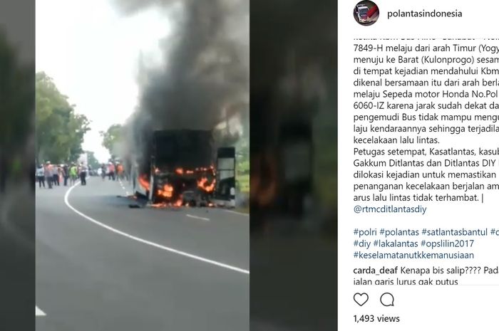 Akibat kecelakaan ini, bus terbakar.