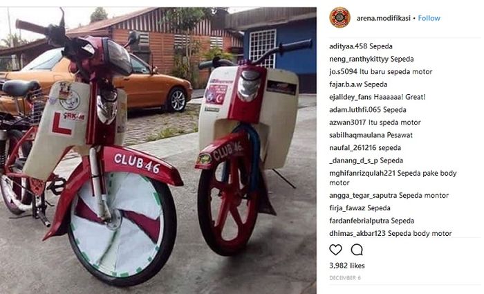 Ternyata, kedua 'motor' itu adalah sepeda yang dimodifikasi seperti Honda Astrea Prima.