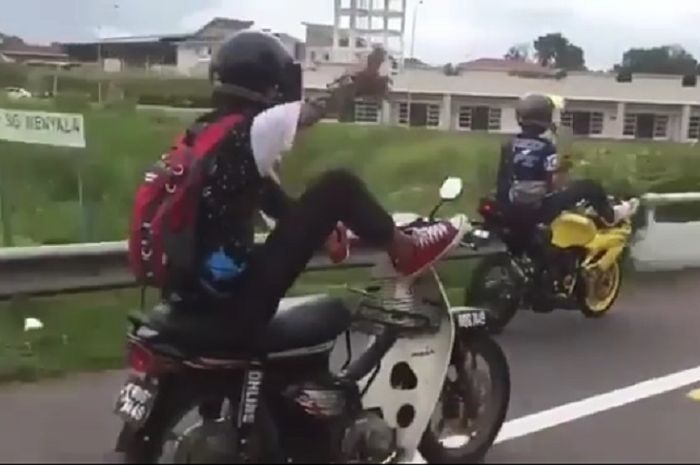 Dua remaja ini menunggangi Honda Astrea Prima dan Kawasaki Ninja RR 150.