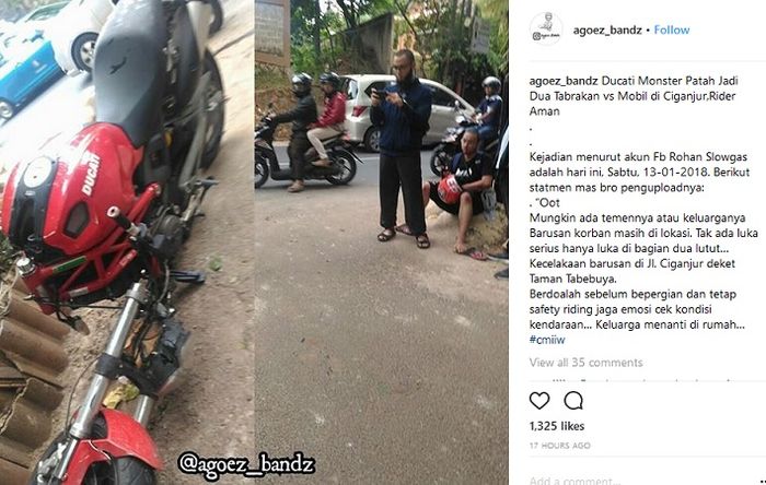 Informasi kecelakaan ini diunggah akun Instagram @agoez_bandz.