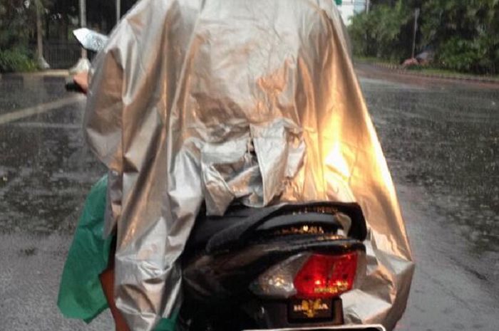Salah satunya adalah jas hujan yang wajib selalu dibawa ketika berkendara.
