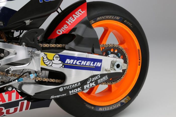 Salah satunya adalah pelek yang menempel pada motor MotoGP Marc Marquez.