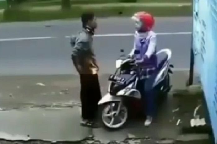 Enggak mau kalah, pasangan bikers ini membuat video adegan romantis.