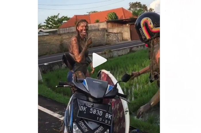 MOTOR Plus-online.com - Video kocak tentang turis asing cantik yang terjatuh dari motor menjadi viral.
