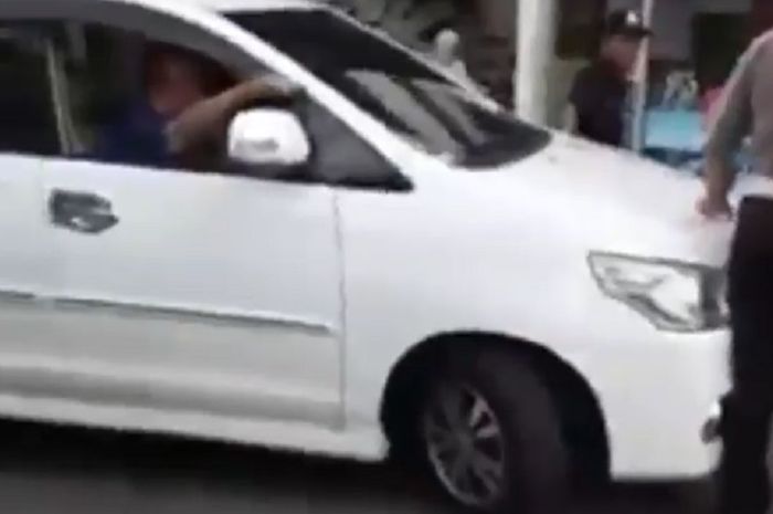 Namun si pengendara tetap marah-marah dan terus mengusir polisi dari depan mobilnya.