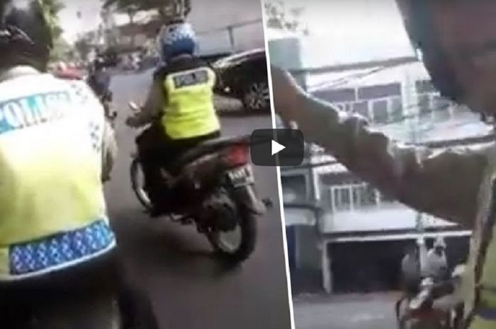 Dalam video terdapat 2 polantas anggota Polda Metro Jaya tengah mengendarai motor.