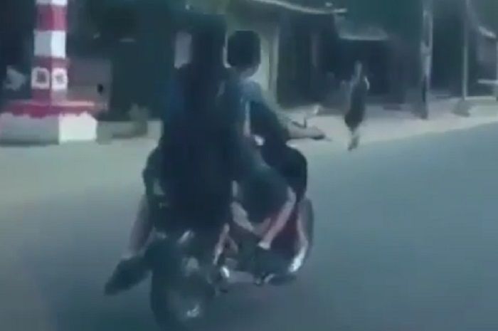 Lagi viral video siswa-siswi yang berboncengan di atas motor jenis bebek.