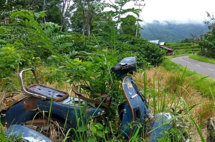 Keberadaan harta karun Vespa PX150 itu tepat di pinggir jalan.