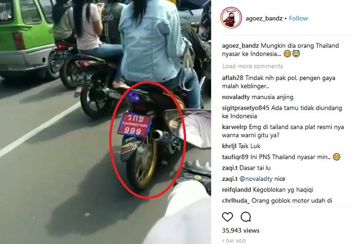 Terang saja pakai ban cacing, knalpot racing dan yang anehnya pakai plat nomor Thailand.
