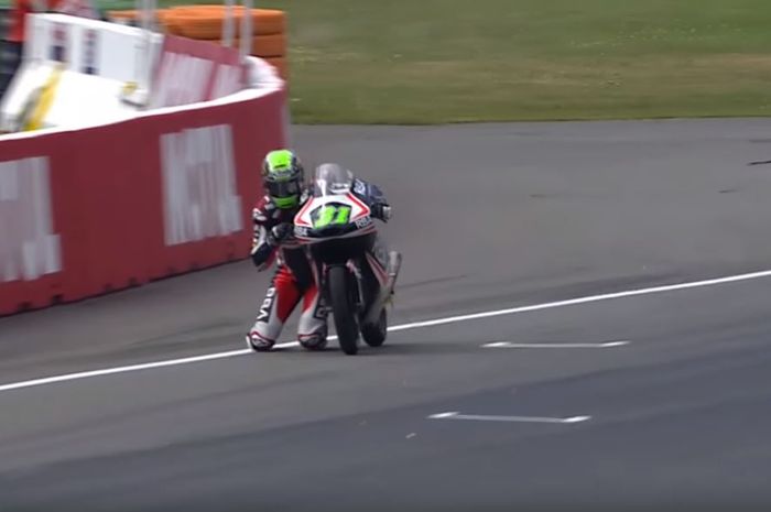 Tapi ternyata ada kok momen dimana pembalap sukses finish dengan 'modal dengkul'!
