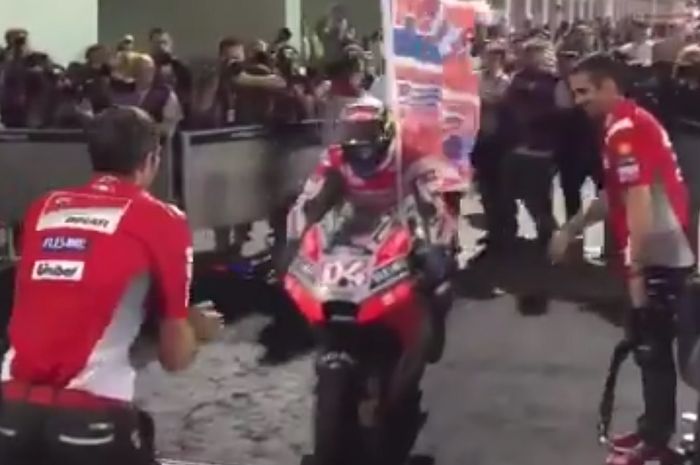 MOTOR Plus-Online.com - Kemenangan Andrea Dovizioso di MotoGP Qatar kemarin malam (18/3/2018) ada yang dahsyat banget.